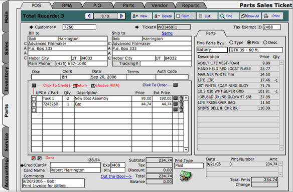 We have a number of special features that we have added to the system like our "OUT THE DOOR" option - you can see right on the screen with the parts entered the exact cost for this ticket .If this customer is a frequent customer and you are would like to give this customer a special deal you can simply click out the door and the system will calculate the cost for the items on the ticket giving you the flexibility to name your price.